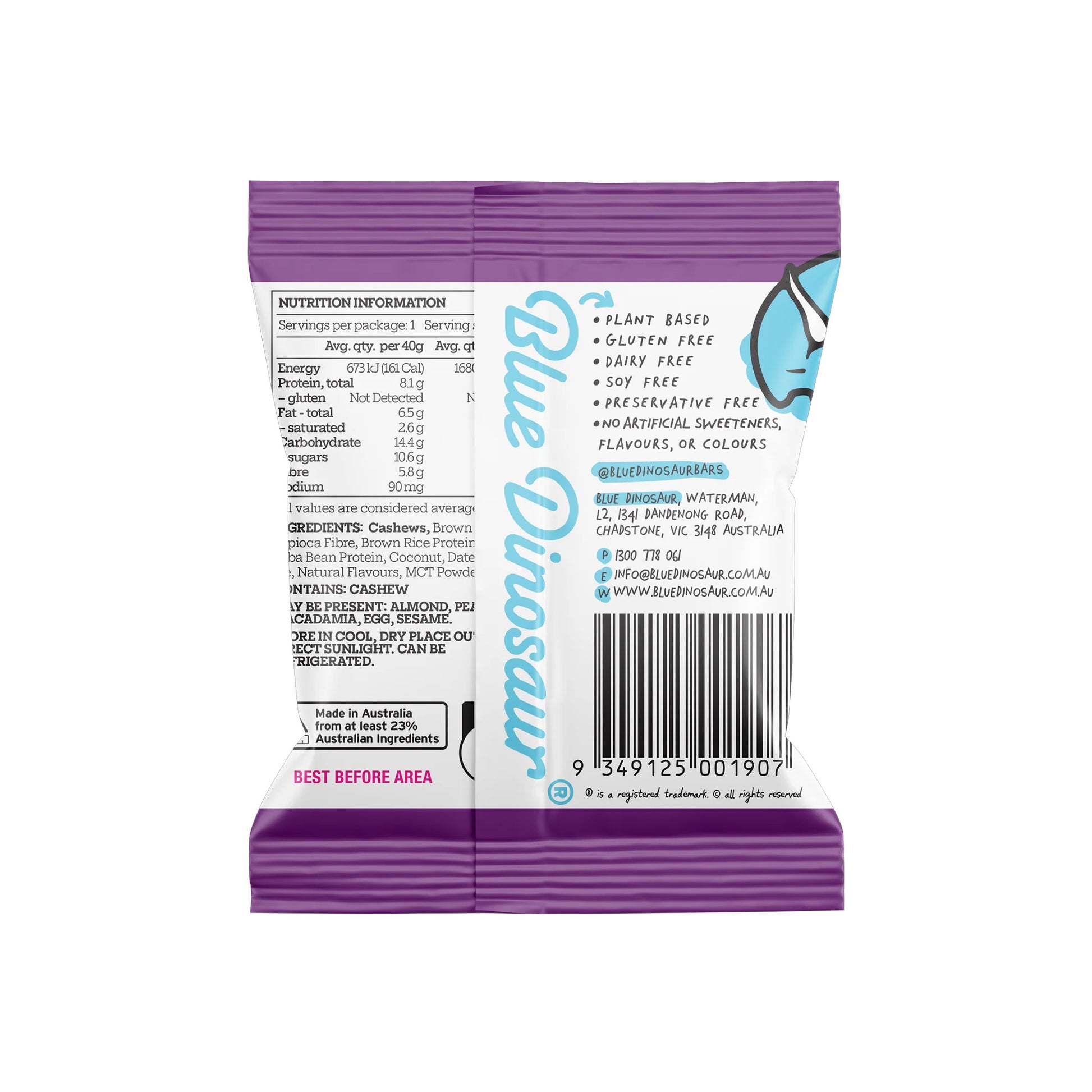 Cashews, brown rice syrup, tapioca fibre, brown rice protein, mango, faba bean protein, coconut, dates, pineapple, natural flavours, mct powder, sea salt