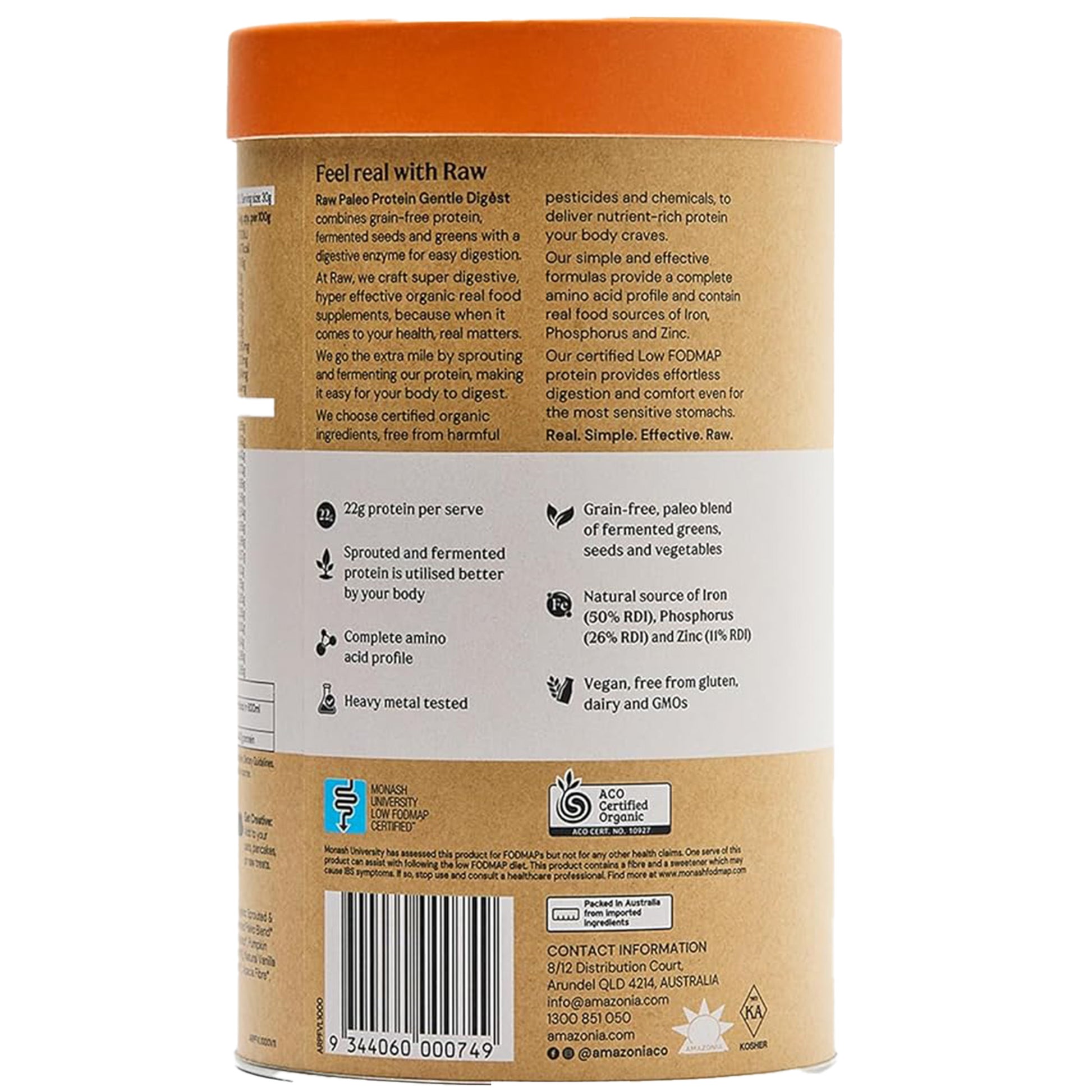 Discover the perfect blend of nature and science with Raw Protein Gentle Digest, designed for optimal digestion and nutrition. This unique formula combines grain-free protein, fermented seeds, and greens with the digestive enzyme bromelain to ensure maximum absorption and comfort.