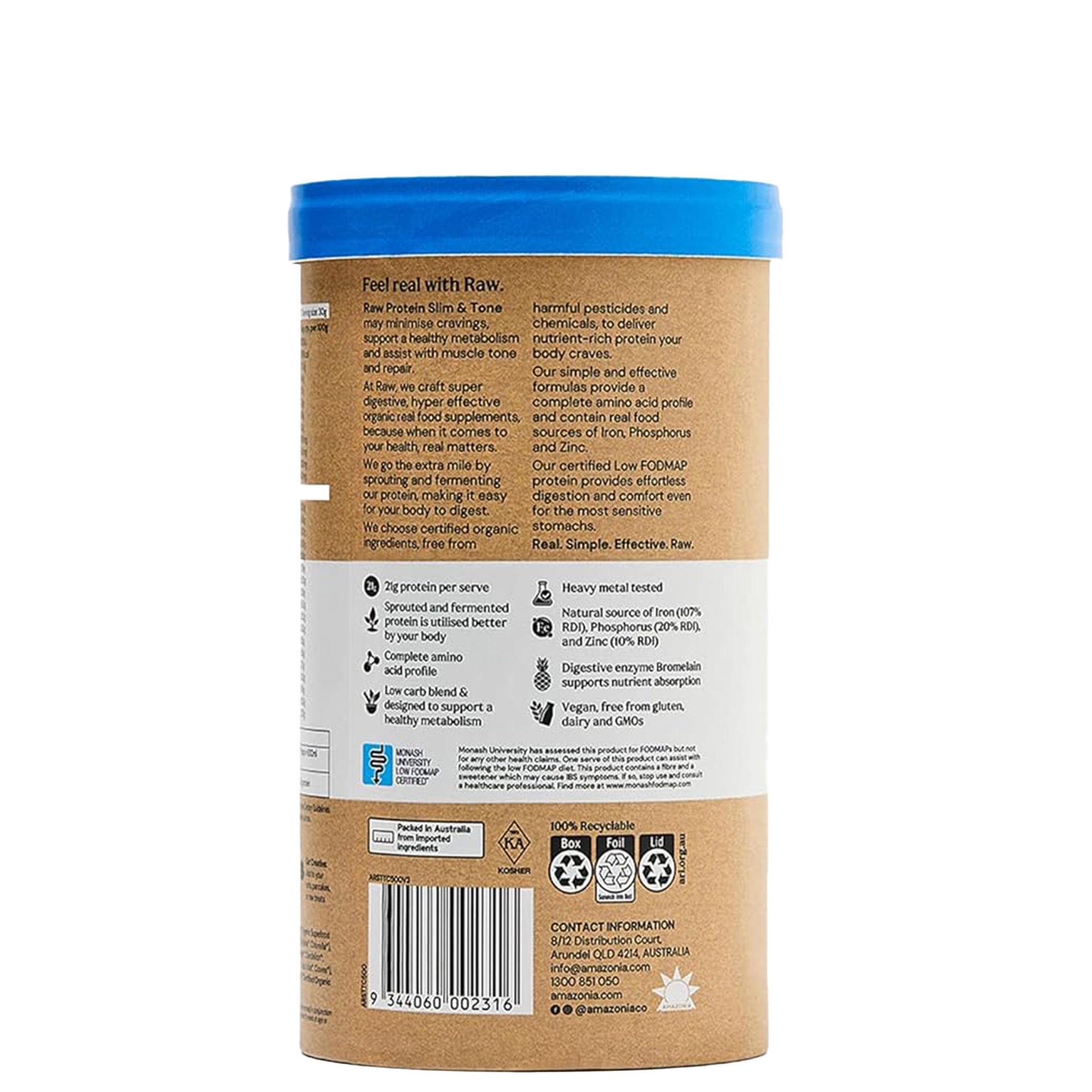Amazonia Raw Protein Slim & Tone is a low-carb formula designed to support a healthy metabolism, reduce cravings, and keep you feeling full for longer.